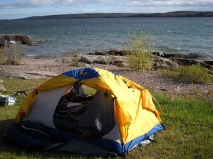The sun says it is early afternoon but our bodies are exhausted. The drive tired us and now we sit at a vast empty site with a lot of gear to set-up. “At least the weather is cooperating,” I explain to my husband. Looking at the bright blue lake and clear blue skies, even he can’t be grumpy right now. “I guess this won’t be so bad,” he says. Perhaps he spoke too soon.