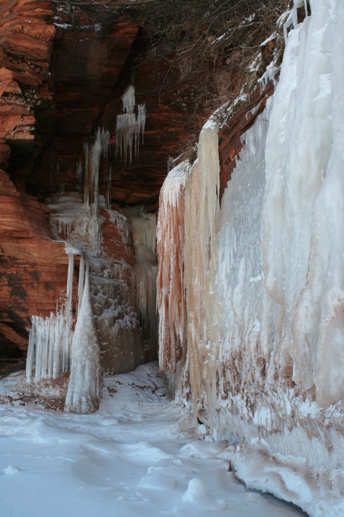 The Apostle Islands Mainland Sea Caves are now open! If you’ve never been, I highly recommend it. While lots of folks visit the Apostle Islands Sea Caves during the summer, winter is tricky because you never quite know if they are going to open. In fact, the last time they were safe to visit by foot was 2009. I highly urge you, before heading out, to be sure it is safe. The easiest way to do this is by calling the National Park Service at (715) 779-3397 Ext. 3. I’d call the morning of because conditions can change on Lake Superior in a heartbeat. And, while the Sea Caves are amazing, safety first folks.